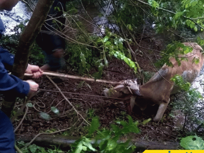 Informações: Diário do IguaçuFoto: Corpo de BombeirosO Corpo de Bombeiros resgatou um boi que es...
