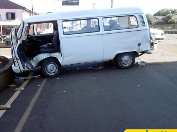 Motorista de Kombi fica gravemente ferido em acidente no centro de São Lourenço do Oeste