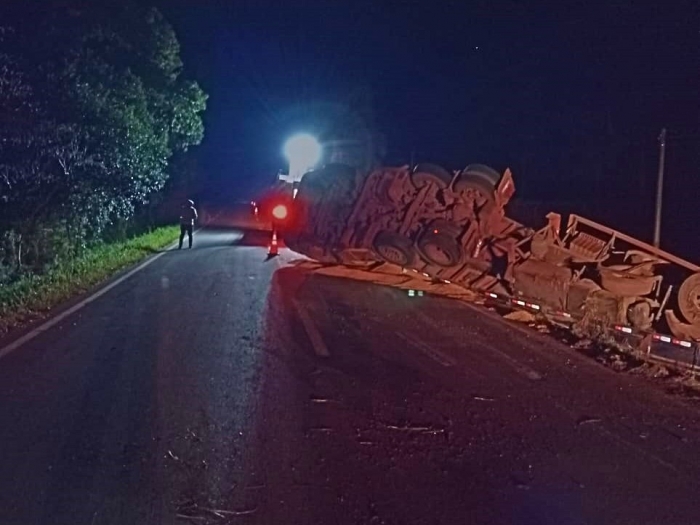 Um caminhão tombou, na noite desat sexta-feira (18), por volda de 22h44, ma rodovia SC-305, em Campo Erê.