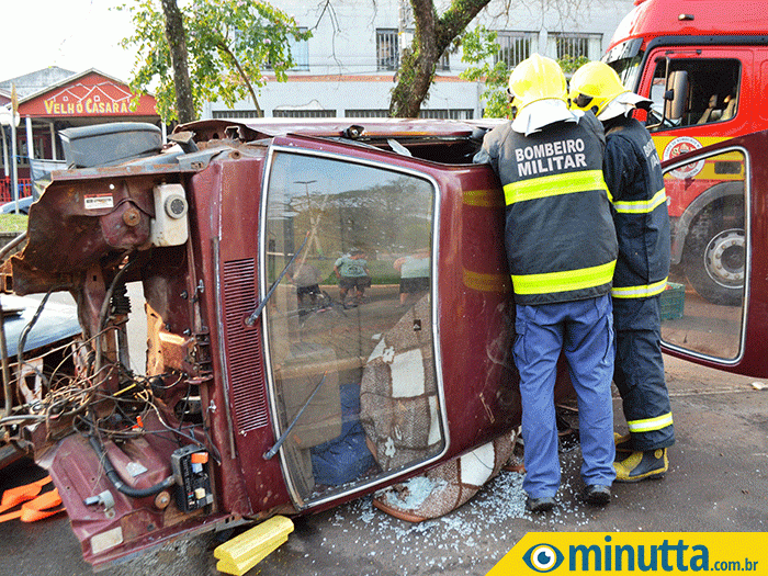 A situação reuniu dezenas de curiosos na praça municipal da Bandeira, na tarde desta quinta-feira (24), tudo por conta de uma simulação de acidente realizada pelo Corpo de Bombeiros de São Lourenço do Oeste, devido a Semana Nacional do Trânsito.